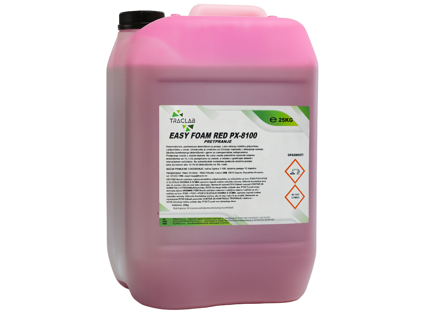 Easy Wash PX-8100 Foam je koncentrirani, parfumirani deterdžent u boji, namijenjen profesionalnom pranju i pretpranju vozila. Formuliran je za učinkovito uklanjanje statičke prljavštine, cestovnih naslaga i insekata, čime osigurava temeljito čišćenje i pripremu vozila za završno pranje. Posebnost proizvoda je što dolazi u više boja, što ga čini privlačnim i prilagođenim različitim preferencijama autopraonica. Zahvaljujući kombinaciji deterdženta i bogate pjene, idealan je za primjenu u samoposlužnim autopraonicama i automatskim sustavima. Kod pretpranja s niskim tlakom preporučuje se otopina deterdženta (1–1,5%) ravnomjerno nanesena na suho vozilo, prilagođeno sezoni i razini nečistoće.