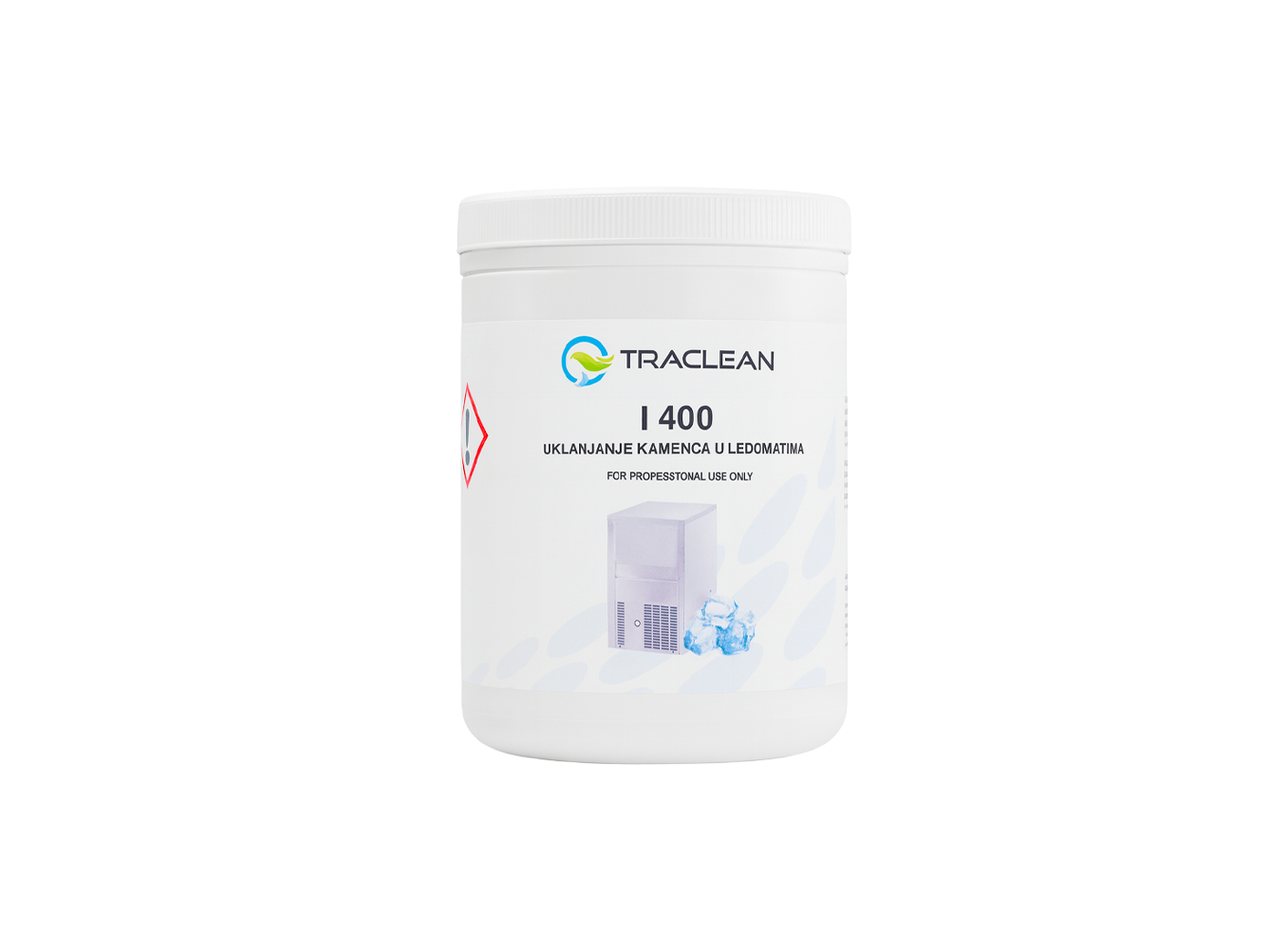 I-400 is a professional product specifically formulated for the effective removal of limescale and mineral deposits in ice makers. With regular use, it ensures optimal machine performance, prevents buildup that reduces efficiency, and extends the lifespan of the equipment. It is intended exclusively for professional use in hospitality, catering, and industrial settings, where hygienically safe ice is essential.